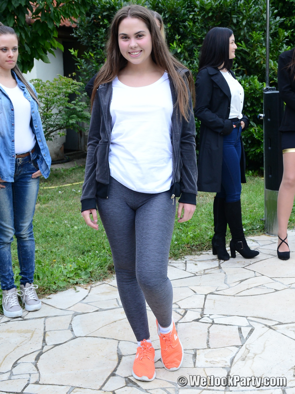 So, what we have here... 19 girls, all dressed up in their own clothes, all of them could choose the clothes they want to get wet into and all of them will have fun in this one.
