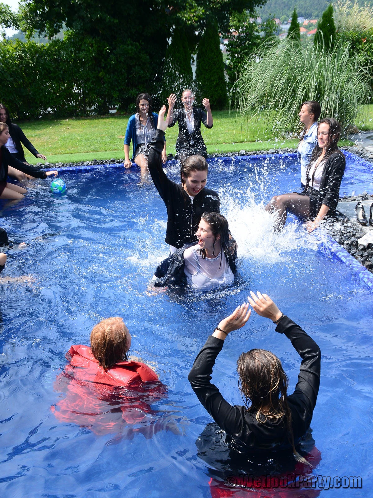 In part three of Wetlook Party 53, the crew decided to stop giving instructions and allowed the girls to have the freedom to enjoy themselves, as long as they stayed wet. A ball, a mattress, and good music contributed to the lively atmosphere.
