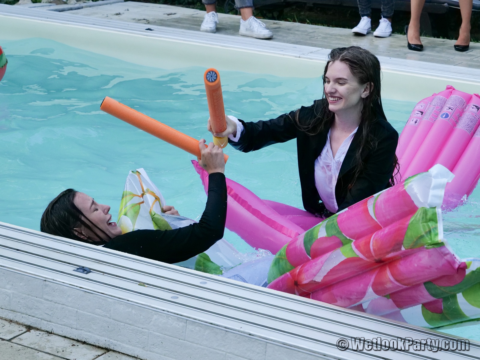 Part 4 of the wetlook party 55. This part is all about Kelli and Colette as they go through the mattress racing, ball retrieving, glass filling, and the water tourney. Enjoy!