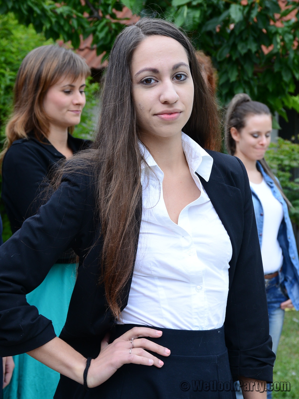 So, what we have here... 19 girls, all dressed up in their own clothes, all of them could choose the clothes they want to get wet into and all of them will have fun in this one.