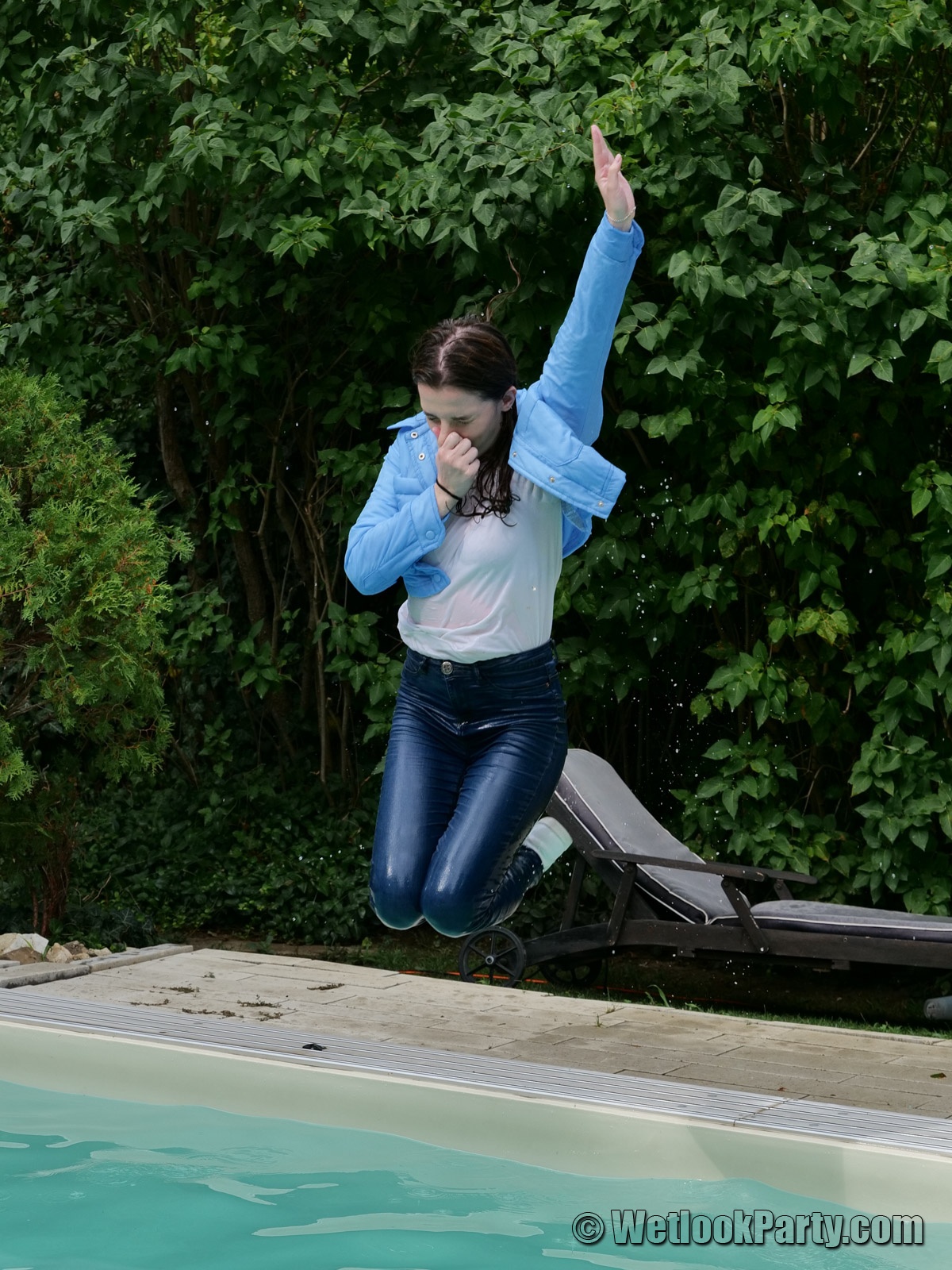 The new wetlook party T1153 is fantastic and I like it better than the party productions before. The new concept is great. I particularly like that the girls are fully clothed for a particularly long time. By that I mean that they wear the jackets with their outfits for a long time in the water. In the previous productions, the girls always took their jackets off too quickly. But what I particularly like in section T1153c8 is that the girls jump into the pool. There should be a lot more scenes like that. I also hope that you produced a party with the girls in which they all wear business outfits.
